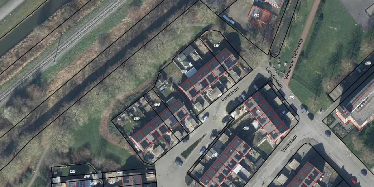 Vurenlaan 22 is gelegen op kadastraal perceel TIE00M908. Deze kadastrale aanduiding is uniek en wordt gebruikt door het Kadaster om eigendomsrechten en andere zakelijke rechten vast te leggen. Het perceel maakt onderdeel uit van de kadastrale gemeente Tiel.