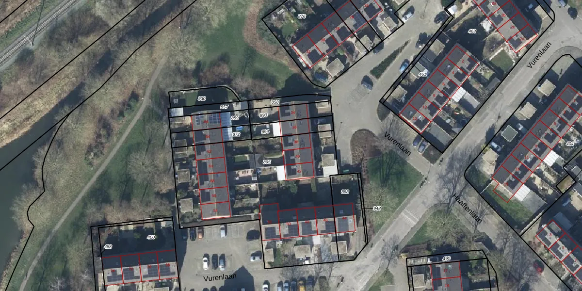 Vurenlaan 38 is gelegen op kadastraal perceel TIE00M895. Deze kadastrale aanduiding is uniek en wordt gebruikt door het Kadaster om eigendomsrechten en andere zakelijke rechten vast te leggen. Het perceel maakt onderdeel uit van de kadastrale gemeente Tiel.