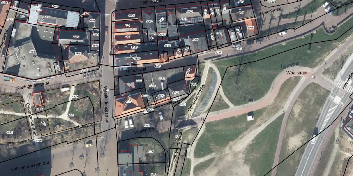 Waalstraat 5 is gelegen op kadastraal perceel TIE00E3403. Deze kadastrale aanduiding is uniek en wordt gebruikt door het Kadaster om eigendomsrechten en andere zakelijke rechten vast te leggen. Het perceel maakt onderdeel uit van de kadastrale gemeente Tiel.