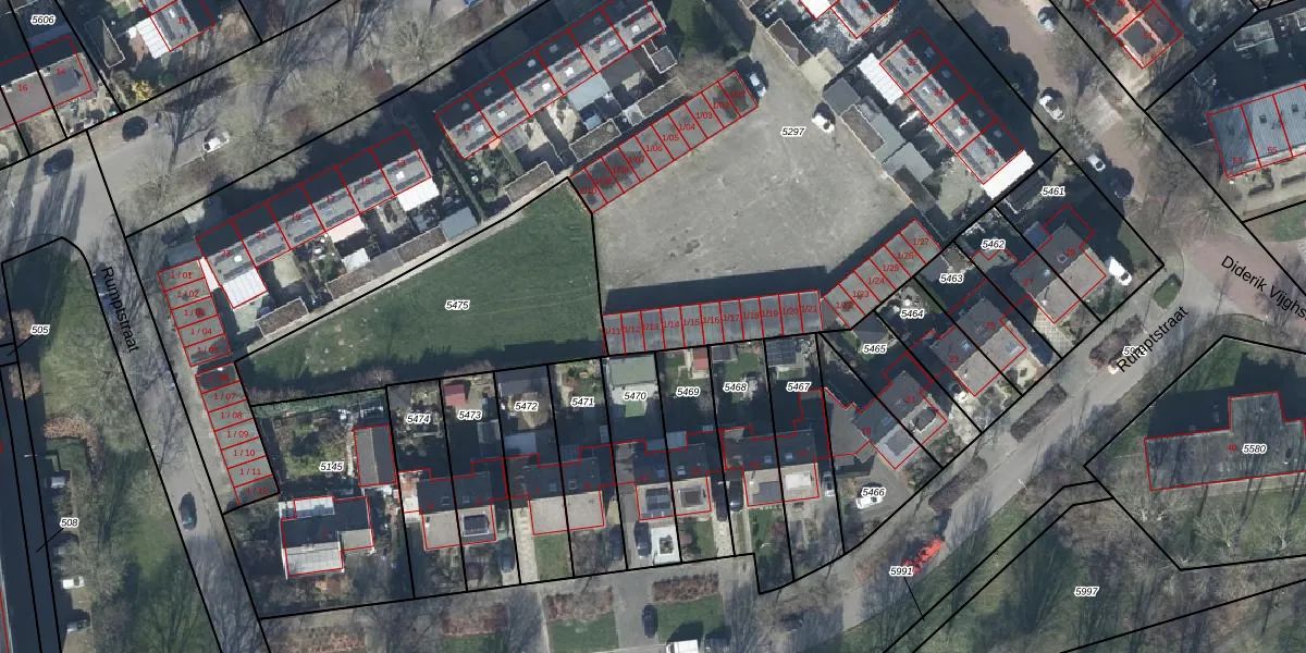 Het adres is gelegen op perceel 5297 in de sectie D en de kadastrale gemeente Tiel. De kadastrale aanduiding is aldus TIE00-D-5297. Het perceel is met 5830 m² relatief groot. Het gemiddelde ligt in de kadastrale gemeente Tiel op 1546,61 m². Het grootste perceel in de kadastrale gemeente is 26,3 ha. Het kleinste perceel heeft een oppervlakte van 0 m². Op het perceel zijn 59 adressen aanwezig. In de Basisregistratie Kadaster (BRK) werden de grenzen van het perceel geregistreerd op 06-04-2004.