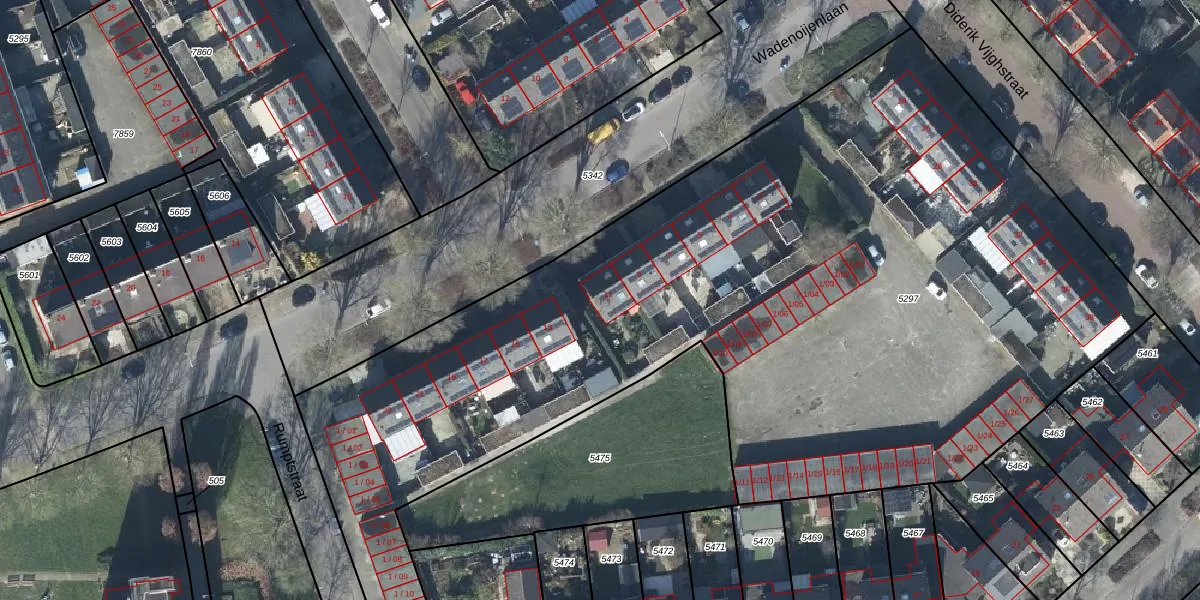Het perceel waarop Wadenoijenlaan 11 staat heeft een oppervlakte van 5830 m². Dit is een zeer groot perceel. De perceeloppervlakte wordt geregistreerd door het Kadaster. Gedetailleerde informatie over de maten van dit perceel kunt u vinden in het rapport Kadastrale kaart met maatvoering van Wadenoijenlaan 11.