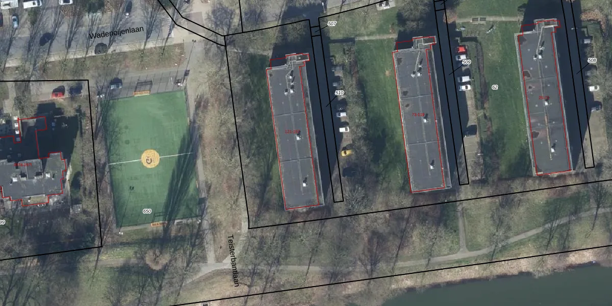 Het perceel waarop Wadenoijenlaan 121-08 staat heeft een oppervlakte van 8965 m². Dit is een zeer groot perceel. De perceeloppervlakte wordt geregistreerd door het Kadaster. Gedetailleerde informatie over de maten van dit perceel kunt u vinden in het rapport Kadastrale kaart met maatvoering van Wadenoijenlaan 121-08.
