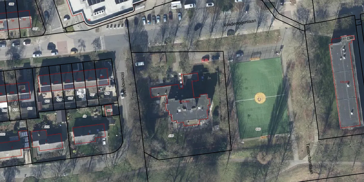 Het perceel waarop Wadenoijenlaan 167-a staat heeft een oppervlakte van 2800 m². Dit is een zeer groot perceel. De perceeloppervlakte wordt geregistreerd door het Kadaster. Gedetailleerde informatie over de maten van dit perceel kunt u vinden in het rapport Kadastrale kaart met maatvoering van Wadenoijenlaan 167-a.