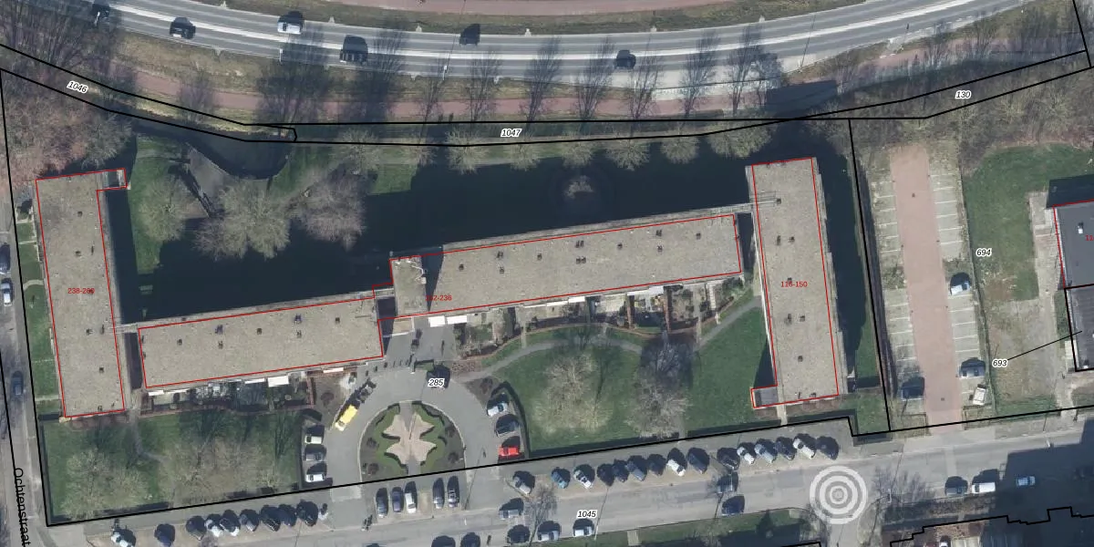 Het adres ligt op het perceel TIE00-M-285, dat zich in de kadastrale gemeente Tiel bevindt. De oppervlakte van het perceel is 9640 m². Dat is groter dan gemiddeld in Tiel, waar de gemiddelde perceeloppervlakte op 1546,7 m² ligt. Het kleinste perceel in de kadastrale gemeente is 0 m² groot. De grootste perceeloppervlakte is 26,3 ha. Er zijn 74 adressen aanwezig op het perceel. In de Basisregistratie Kadaster (BRK) werden de grenzen van het perceel geregistreerd op 21-02-2023.
