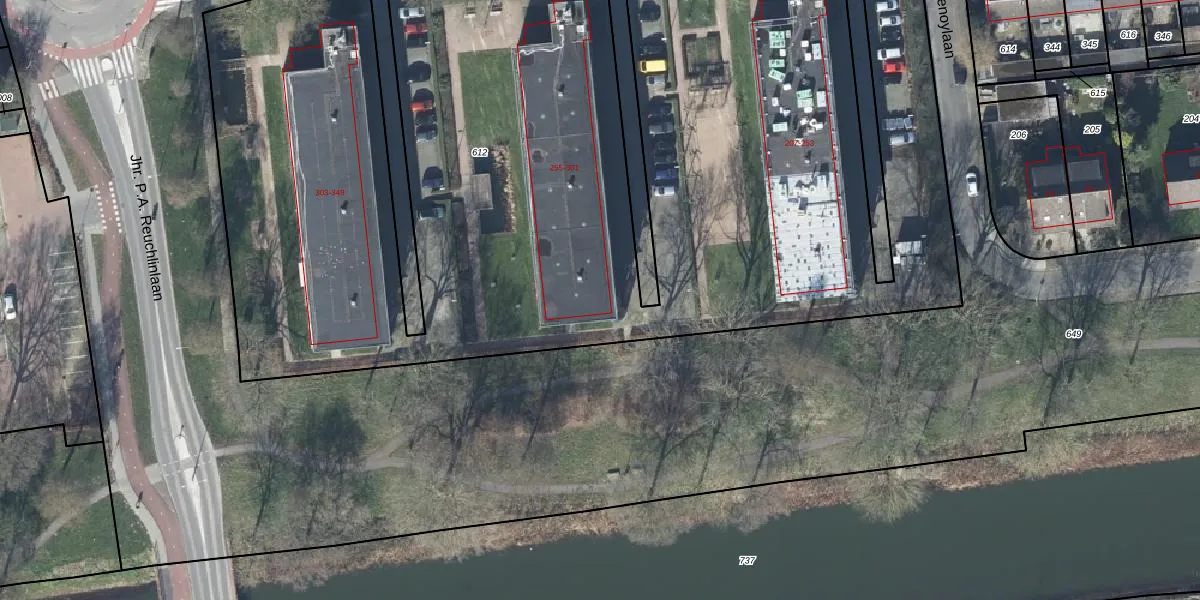 Wadenoijenlaan 255-12 is gelegen op kadastraal perceel TIE00M612. Deze kadastrale aanduiding is uniek en wordt gebruikt door het Kadaster om eigendomsrechten en andere zakelijke rechten vast te leggen. Het perceel maakt onderdeel uit van de kadastrale gemeente Tiel.