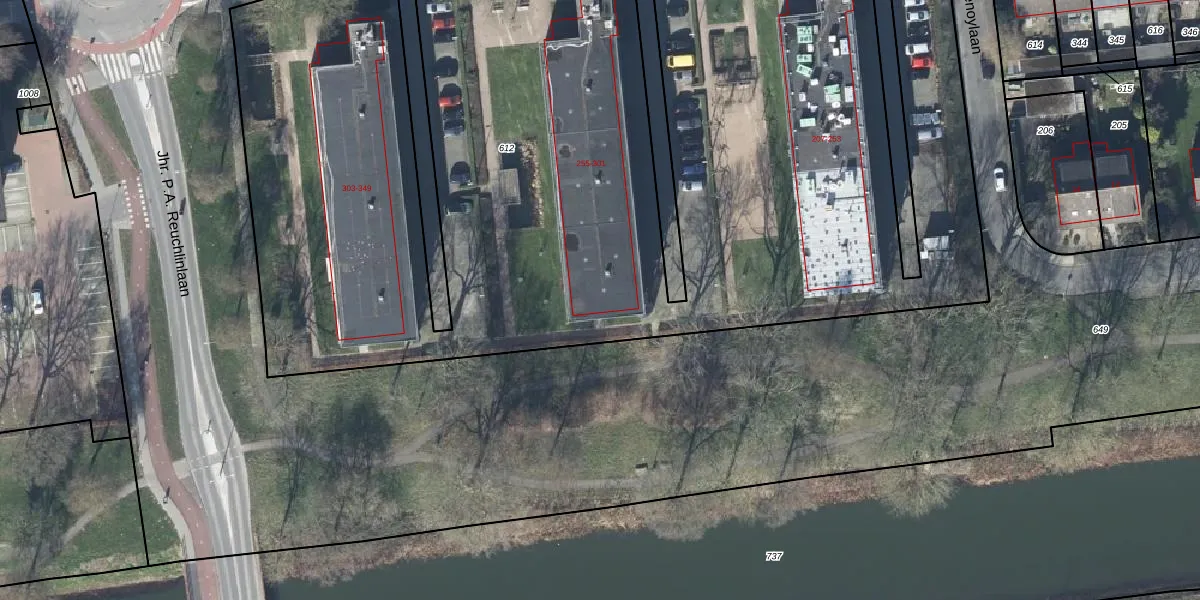 Het perceel waarop Wadenoijenlaan 277 staat heeft een oppervlakte van 7181 m². Dit is een zeer groot perceel. De perceeloppervlakte wordt geregistreerd door het Kadaster. Gedetailleerde informatie over de maten van dit perceel kunt u vinden in het rapport Kadastrale kaart met maatvoering van Wadenoijenlaan 277.