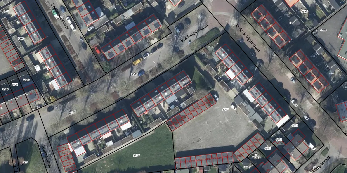 Het perceel waarop Wadenoijenlaan 3 staat heeft een oppervlakte van 5830 m². Dit is een zeer groot perceel. De perceeloppervlakte wordt geregistreerd door het Kadaster. Gedetailleerde informatie over de maten van dit perceel kunt u vinden in het rapport Kadastrale kaart met maatvoering van Wadenoijenlaan 3.