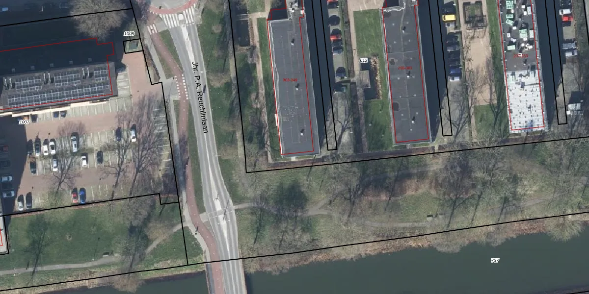 Het adres ligt op het perceel TIE00-M-612, dat zich in de kadastrale gemeente Tiel bevindt. De oppervlakte van het perceel is 7181 m². Dat is groter dan gemiddeld in Tiel, waar de gemiddelde perceeloppervlakte op 1546,61 m² ligt. De grootste perceeloppervlakte in de kadastrale gemeente is 26,3 ha. De kleinste oppervlakte bedraagt 0 m². Op het perceel zijn 108 adressen aanwezig. De laatste wijziging in het de Basisregistratie Kadaster (BRK) was op 17-01-2003.