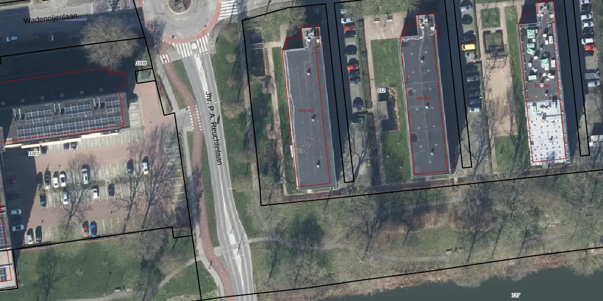 Het perceel waarop Wadenoijenlaan 335 staat heeft een oppervlakte van 7181 m². Dit is een zeer groot perceel. De perceeloppervlakte wordt geregistreerd door het Kadaster. Gedetailleerde informatie over de maten van dit perceel kunt u vinden in het rapport Kadastrale kaart met maatvoering van Wadenoijenlaan 335.
