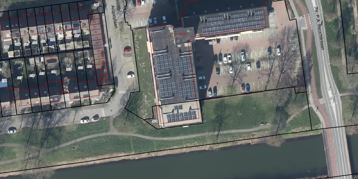 Het adres ligt op het perceel TIE00-M-1007, dat zich in de kadastrale gemeente Tiel bevindt. De oppervlakte van het perceel is 5869 m². Dat is groter dan gemiddeld in Tiel, waar de gemiddelde perceeloppervlakte op 1546,61 m² ligt. De grootste perceeloppervlakte in de kadastrale gemeente is 26,3 ha. De kleinste oppervlakte bedraagt 0 m². Op het perceel liggen in totaal 108 adressen. In de Basisregistratie Kadaster (BRK) werden de grenzen van het perceel geregistreerd op 30-08-2023.