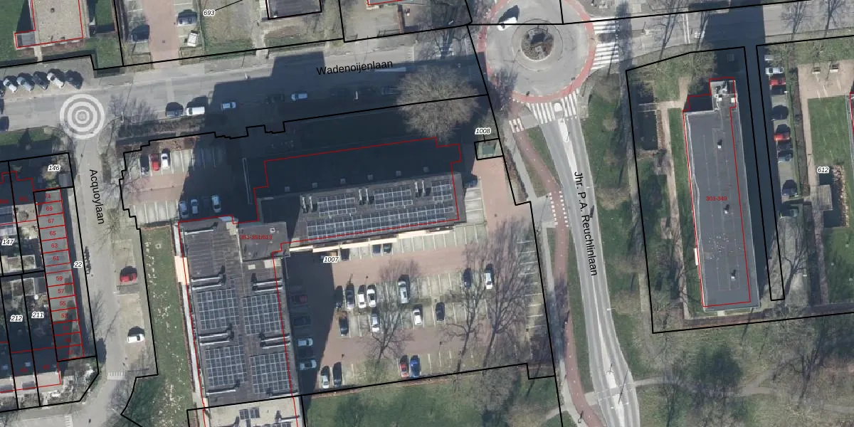 Het perceel waarop Wadenoijenlaan 351-119 staat heeft een oppervlakte van 5869 m². Dit is een zeer groot perceel. De perceeloppervlakte wordt geregistreerd door het Kadaster. Gedetailleerde informatie over de maten van dit perceel kunt u vinden in het rapport Kadastrale kaart met maatvoering van Wadenoijenlaan 351-119.