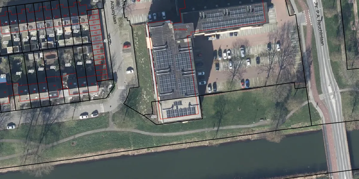 Het perceel waarop Wadenoijenlaan 351-209 staat heeft een oppervlakte van 5869 m². Dit is een zeer groot perceel. De perceeloppervlakte wordt geregistreerd door het Kadaster. Gedetailleerde informatie over de maten van dit perceel kunt u vinden in het rapport Kadastrale kaart met maatvoering van Wadenoijenlaan 351-209.