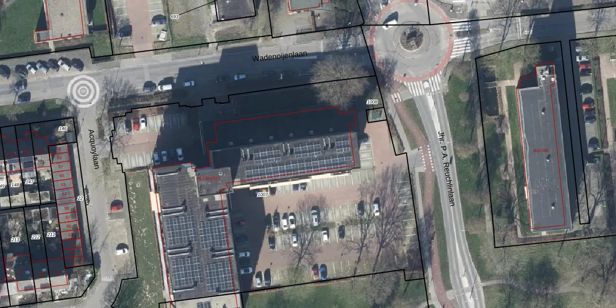 Het perceel waarop Wadenoijenlaan 351-218 staat heeft een oppervlakte van 5869 m². Dit is een zeer groot perceel. De perceeloppervlakte wordt geregistreerd door het Kadaster. Gedetailleerde informatie over de maten van dit perceel kunt u vinden in het rapport Kadastrale kaart met maatvoering van Wadenoijenlaan 351-218.