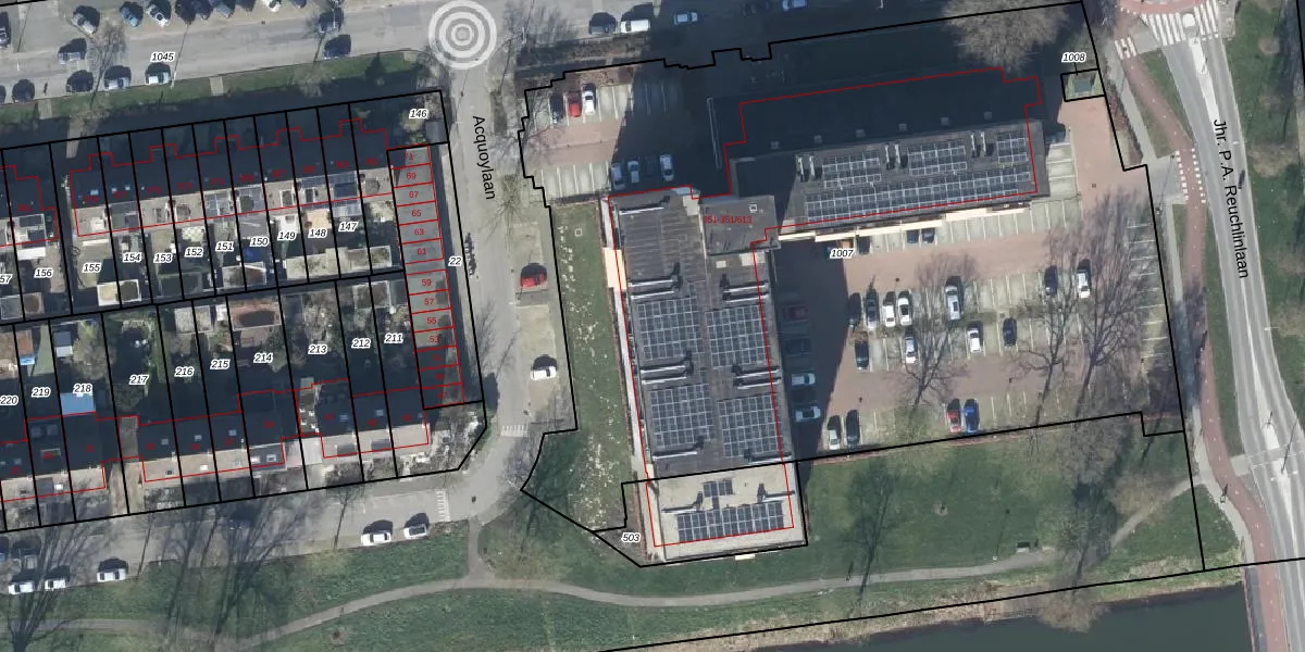 Het perceel waarop Wadenoijenlaan 351-404 staat heeft een oppervlakte van 5869 m². Dit is een zeer groot perceel. De perceeloppervlakte wordt geregistreerd door het Kadaster. Gedetailleerde informatie over de maten van dit perceel kunt u vinden in het rapport Kadastrale kaart met maatvoering van Wadenoijenlaan 351-404.
