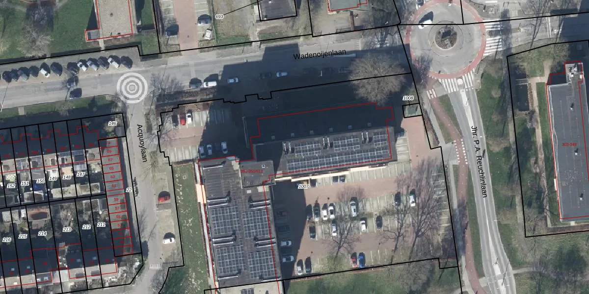 Het perceel waarop Wadenoijenlaan 351-515 staat heeft een oppervlakte van 5869 m². Dit is een zeer groot perceel. De perceeloppervlakte wordt geregistreerd door het Kadaster. Gedetailleerde informatie over de maten van dit perceel kunt u vinden in het rapport Kadastrale kaart met maatvoering van Wadenoijenlaan 351-515.