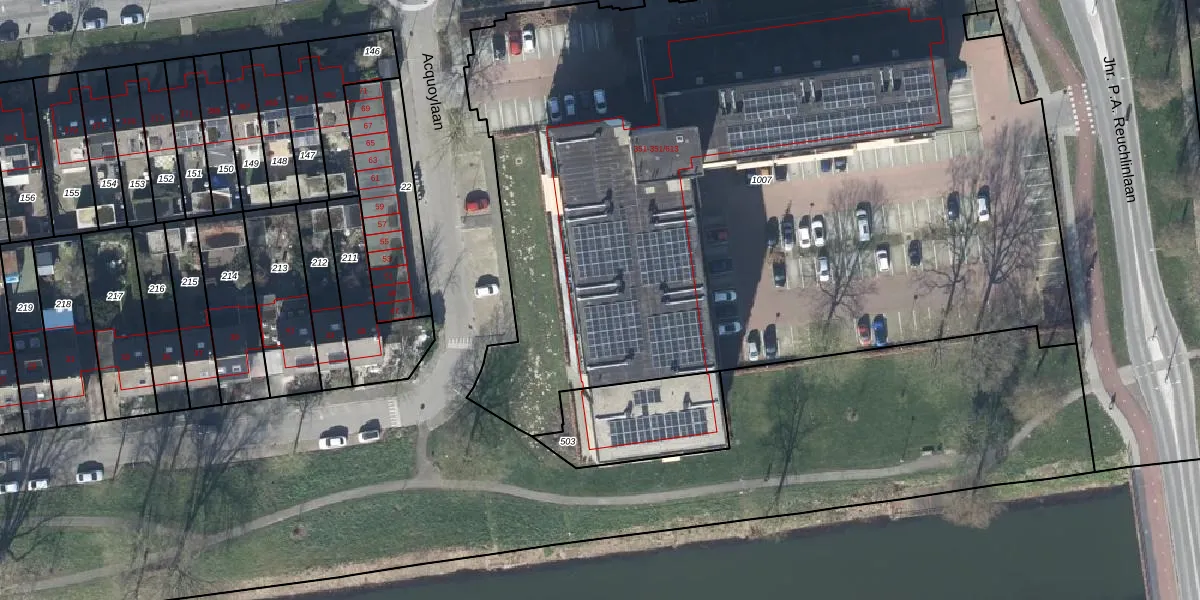 Het perceel waarop Wadenoijenlaan 351-605 staat heeft een oppervlakte van 5869 m². Dit is een zeer groot perceel. De perceeloppervlakte wordt geregistreerd door het Kadaster. Gedetailleerde informatie over de maten van dit perceel kunt u vinden in het rapport Kadastrale kaart met maatvoering van Wadenoijenlaan 351-605.