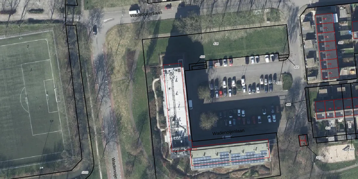 Het perceel waarop Wadenoijenlaan 515 staat heeft een oppervlakte van 4039 m². Dit is een zeer groot perceel. De perceeloppervlakte wordt geregistreerd door het Kadaster. Gedetailleerde informatie over de maten van dit perceel kunt u vinden in het rapport Kadastrale kaart met maatvoering van Wadenoijenlaan 515.
