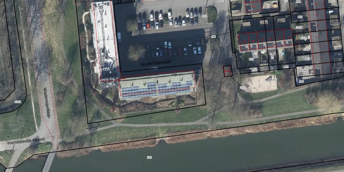 Het perceel waarop Wadenoijenlaan 545 staat heeft een oppervlakte van 4039 m². Dit is een zeer groot perceel. De perceeloppervlakte wordt geregistreerd door het Kadaster. Gedetailleerde informatie over de maten van dit perceel kunt u vinden in het rapport Kadastrale kaart met maatvoering van Wadenoijenlaan 545.