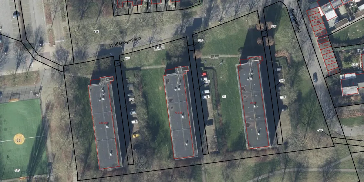 Wadenoijenlaan 73-03 is gelegen op kadastraal perceel TIE00M62. Deze kadastrale aanduiding is uniek en wordt gebruikt door het Kadaster om eigendomsrechten en andere zakelijke rechten vast te leggen. Het perceel maakt onderdeel uit van de kadastrale gemeente Tiel.