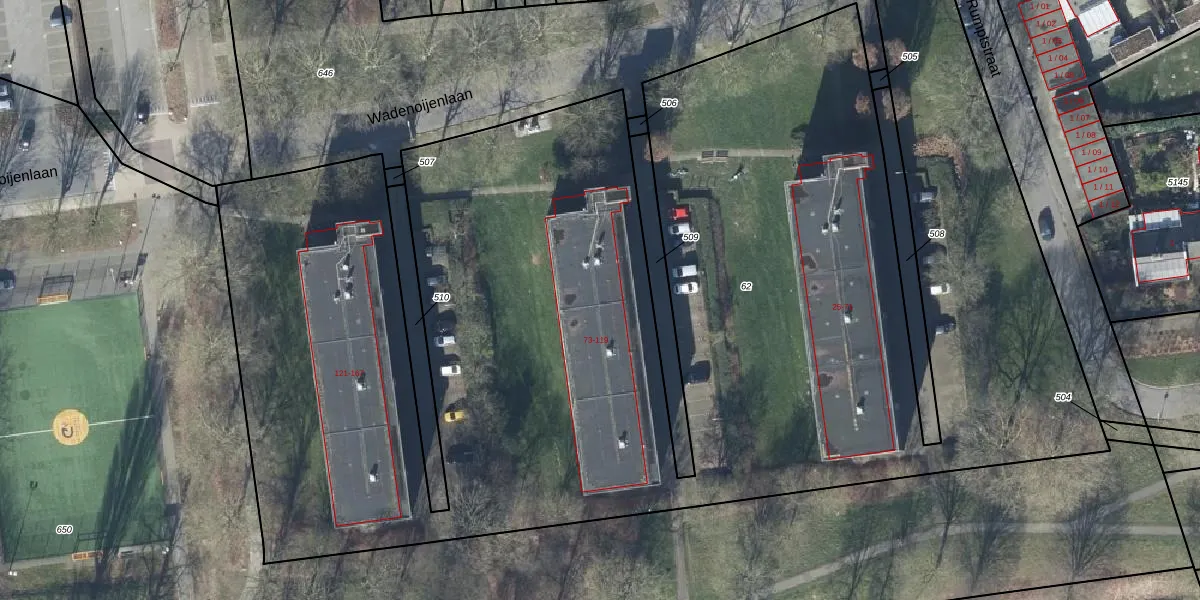 Het perceel waarop Wadenoijenlaan 75 staat heeft een oppervlakte van 8965 m². Dit is een zeer groot perceel. De perceeloppervlakte wordt geregistreerd door het Kadaster. Gedetailleerde informatie over de maten van dit perceel kunt u vinden in het rapport Kadastrale kaart met maatvoering van Wadenoijenlaan 75.