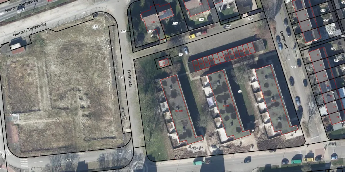 Het adres ligt op het perceel TIE00-M-19, dat zich in de kadastrale gemeente Tiel bevindt. De oppervlakte van het perceel is 5875 m². Dat is groter dan gemiddeld in Tiel, waar de gemiddelde perceeloppervlakte op 1546,7 m² ligt. Het grootste perceel in de kadastrale gemeente is 26,3 ha. Het kleinste perceel heeft een oppervlakte van 0 m². Op het perceel zijn 48 adressen aanwezig. In de Basisregistratie Kadaster (BRK) werden de grenzen van het perceel geregistreerd op 03-09-2007.
