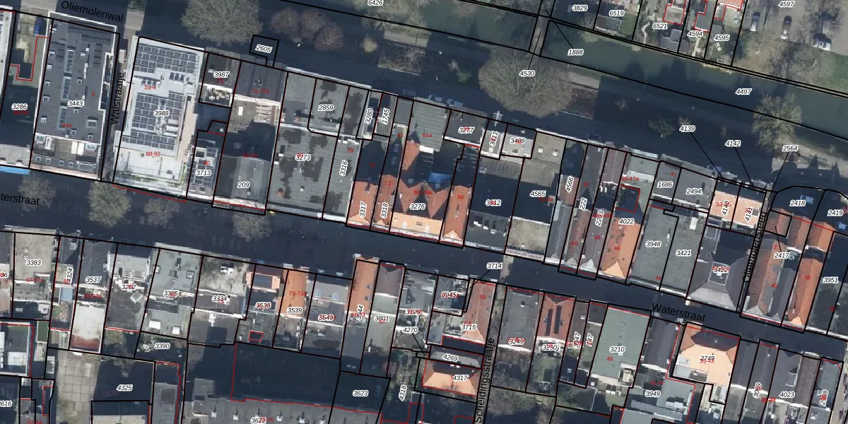 Het perceel waarop Waterstraat 68 staat heeft een oppervlakte van 360 m². Dit is een groot perceel. De perceeloppervlakte wordt geregistreerd door het Kadaster. Gedetailleerde informatie over de maten van dit perceel kunt u vinden in het rapport Kadastrale kaart met maatvoering van Waterstraat 68.