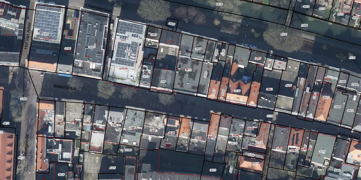 Het perceel waarop Waterstraat 80 staat heeft een oppervlakte van 361 m². Dit is een groot perceel. De perceeloppervlakte wordt geregistreerd door het Kadaster. Gedetailleerde informatie over de maten van dit perceel kunt u vinden in het rapport Kadastrale kaart met maatvoering van Waterstraat 80.