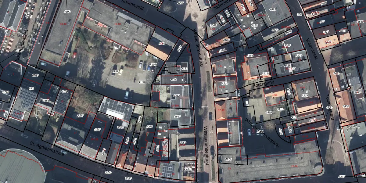 Westluidensestraat 12-12 is gelegen op kadastraal perceel TIE00E3352. Deze kadastrale aanduiding is uniek en wordt gebruikt door het Kadaster om eigendomsrechten en andere zakelijke rechten vast te leggen. Het perceel maakt onderdeel uit van de kadastrale gemeente Tiel.