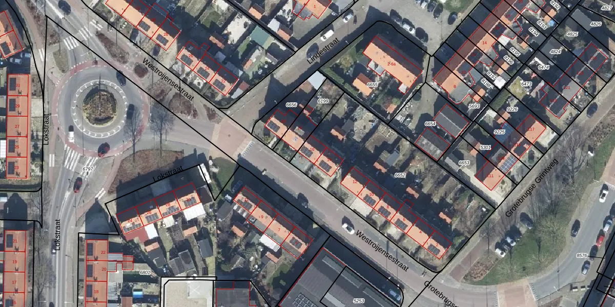 Westroijensestraat 16 is gelegen op kadastraal perceel TIE00C6652. Deze kadastrale aanduiding is uniek en wordt gebruikt door het Kadaster om eigendomsrechten en andere zakelijke rechten vast te leggen. Het perceel maakt onderdeel uit van de kadastrale gemeente Tiel.