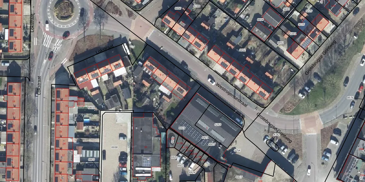 Westroijensestraat 5 is gelegen op kadastraal perceel TIE00C6801. Deze kadastrale aanduiding is uniek en wordt gebruikt door het Kadaster om eigendomsrechten en andere zakelijke rechten vast te leggen. Het perceel maakt onderdeel uit van de kadastrale gemeente Tiel.
