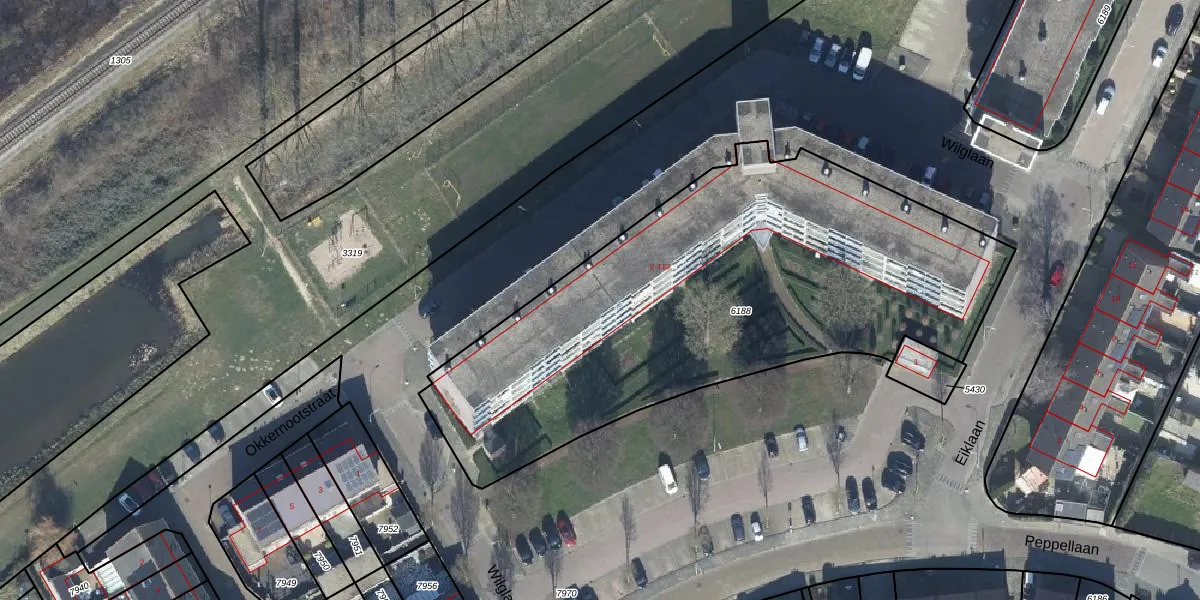 Het perceel waarop Wilglaan 44 staat heeft een oppervlakte van 2620 m². Dit is een zeer groot perceel. De perceeloppervlakte wordt geregistreerd door het Kadaster. Gedetailleerde informatie over de maten van dit perceel kunt u vinden in het rapport Kadastrale kaart met maatvoering van Wilglaan 44.