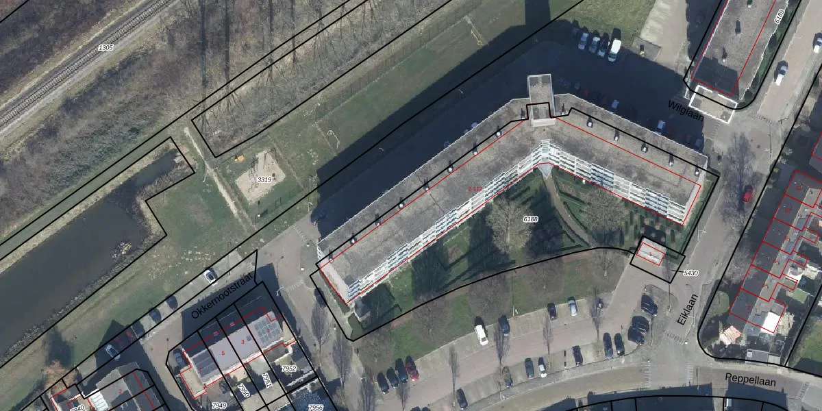 Het perceel waarop Wilglaan 6 staat heeft een oppervlakte van 2620 m². Dit is een zeer groot perceel. De perceeloppervlakte wordt geregistreerd door het Kadaster. Gedetailleerde informatie over de maten van dit perceel kunt u vinden in het rapport Kadastrale kaart met maatvoering van Wilglaan 6.