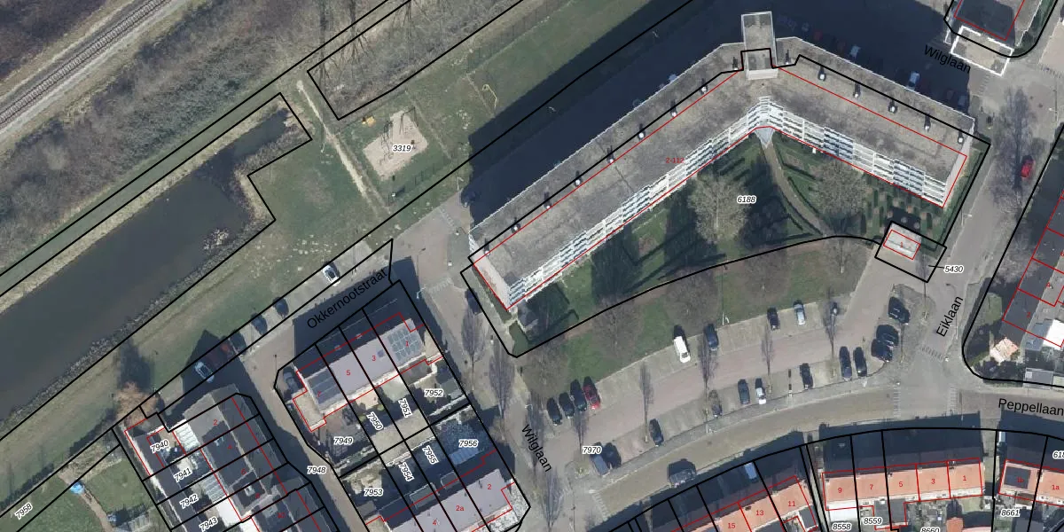 Het perceel waarop Wilglaan 64 staat heeft een oppervlakte van 2620 m². Dit is een zeer groot perceel. De perceeloppervlakte wordt geregistreerd door het Kadaster. Gedetailleerde informatie over de maten van dit perceel kunt u vinden in het rapport Kadastrale kaart met maatvoering van Wilglaan 64.