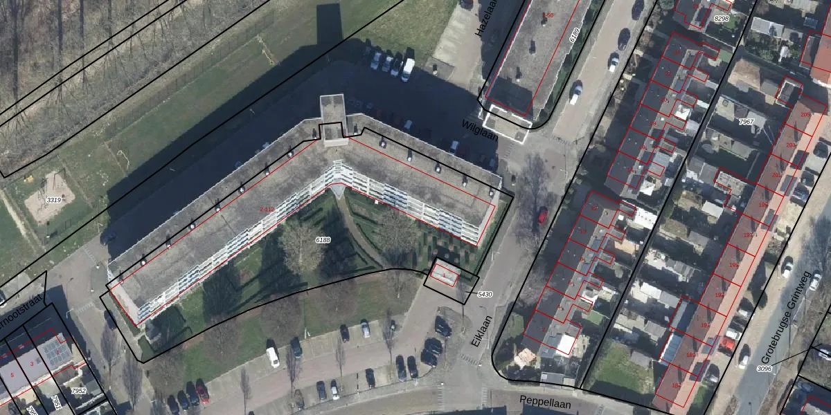 Het perceel waarop Wilglaan 82 staat heeft een oppervlakte van 2620 m². Dit is een zeer groot perceel. De perceeloppervlakte wordt geregistreerd door het Kadaster. Gedetailleerde informatie over de maten van dit perceel kunt u vinden in het rapport Kadastrale kaart met maatvoering van Wilglaan 82.
