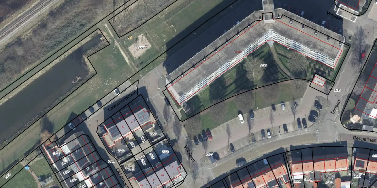 Het perceel waarop Wilglaan 90 staat heeft een oppervlakte van 2620 m². Dit is een zeer groot perceel. De perceeloppervlakte wordt geregistreerd door het Kadaster. Gedetailleerde informatie over de maten van dit perceel kunt u vinden in het rapport Kadastrale kaart met maatvoering van Wilglaan 90.