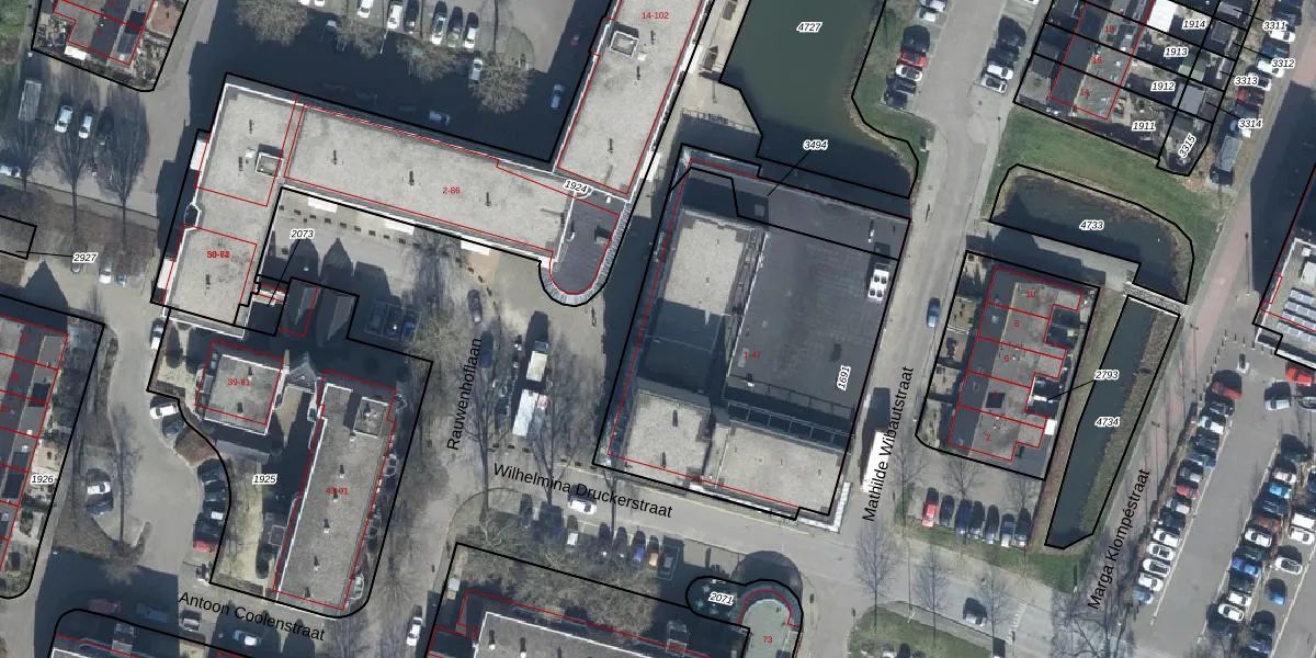 Het perceel waarop Wilhelmina Druckerstraat 19 staat heeft een oppervlakte van 1577 m². Dit is een zeer groot perceel. De perceeloppervlakte wordt geregistreerd door het Kadaster. Gedetailleerde informatie over de maten van dit perceel kunt u vinden in het rapport Kadastrale kaart met maatvoering van Wilhelmina Druckerstraat 19.