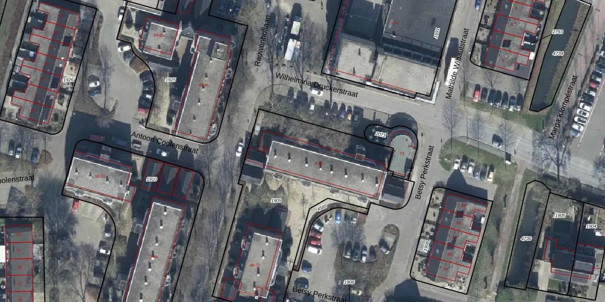 Het perceel waarop Wilhelmina Druckerstraat 6 staat heeft een oppervlakte van 2110 m². Dit is een zeer groot perceel. De perceeloppervlakte wordt geregistreerd door het Kadaster. Gedetailleerde informatie over de maten van dit perceel kunt u vinden in het rapport Kadastrale kaart met maatvoering van Wilhelmina Druckerstraat 6.