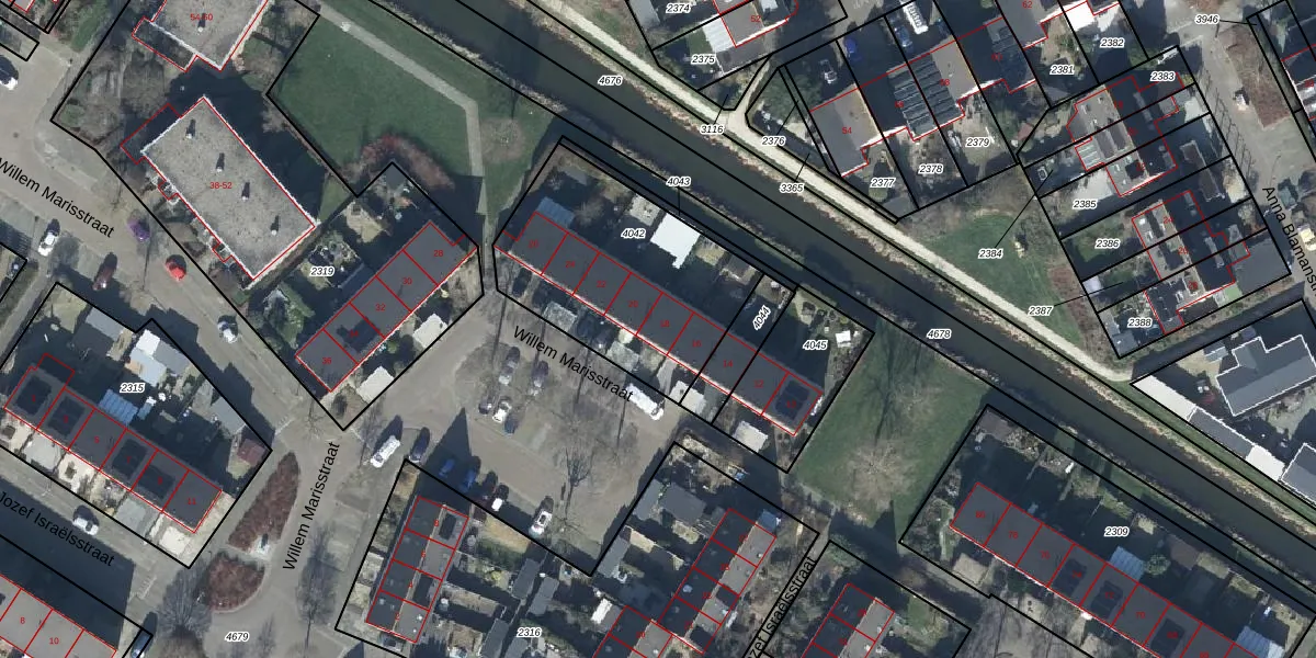 Het perceel waarop Willem Marisstraat 18 staat heeft een oppervlakte van 875 m². Dit is een groot perceel. De perceeloppervlakte wordt geregistreerd door het Kadaster. Gedetailleerde informatie over de maten van dit perceel kunt u vinden in het rapport Kadastrale kaart met maatvoering van Willem Marisstraat 18.