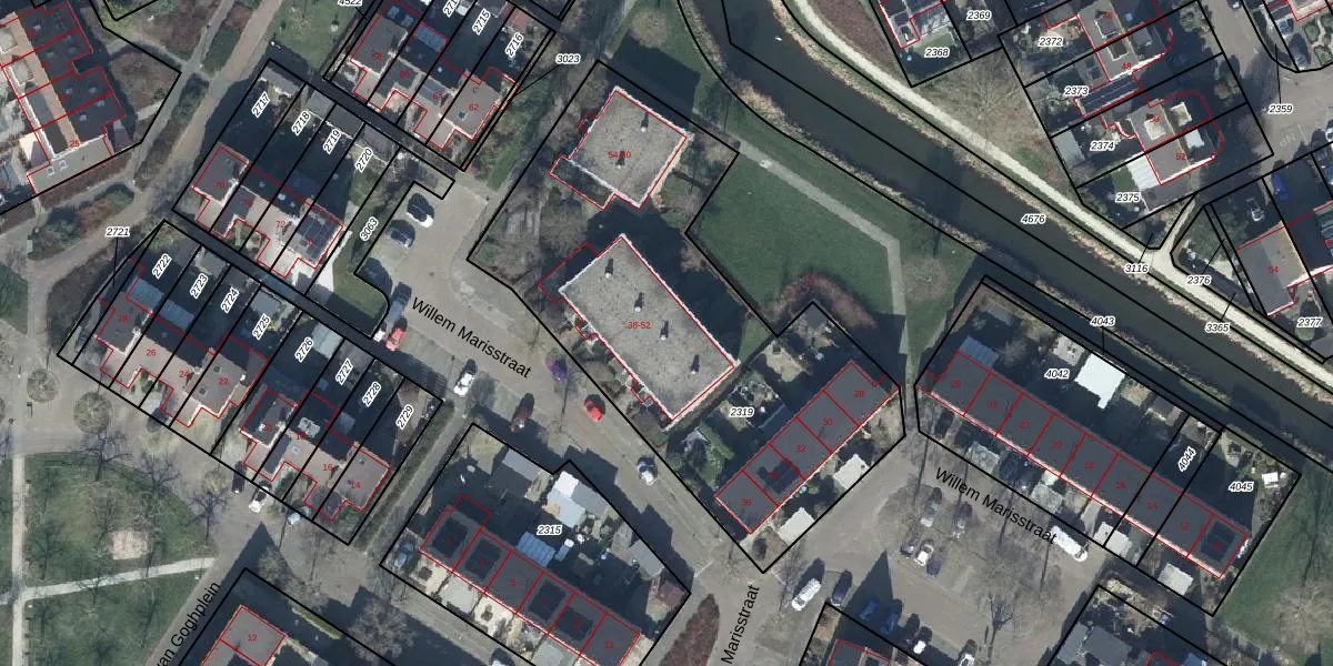 Willem Marisstraat 44 is gelegen op kadastraal perceel TIE00H2319. Deze kadastrale aanduiding is uniek en wordt gebruikt door het Kadaster om eigendomsrechten en andere zakelijke rechten vast te leggen. Het perceel maakt onderdeel uit van de kadastrale gemeente Tiel.