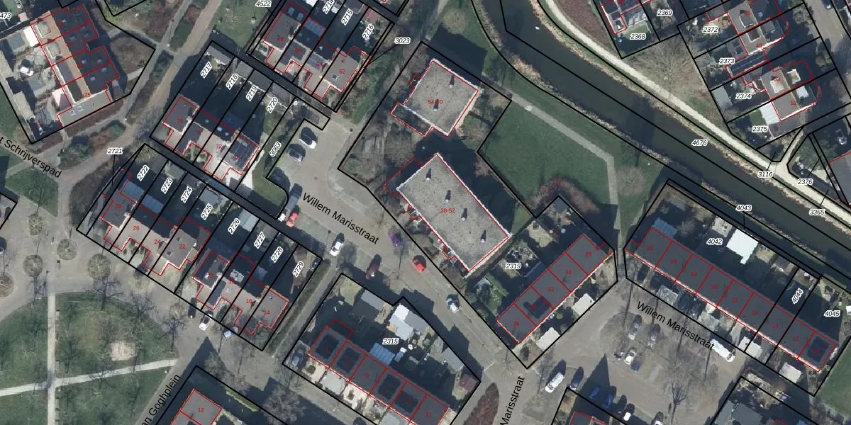 Het perceel waarop Willem Marisstraat 46 staat heeft een oppervlakte van 2200 m². Dit is een zeer groot perceel. De perceeloppervlakte wordt geregistreerd door het Kadaster. Gedetailleerde informatie over de maten van dit perceel kunt u vinden in het rapport Kadastrale kaart met maatvoering van Willem Marisstraat 46.