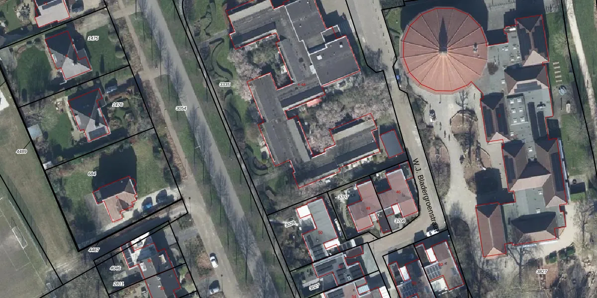 Het perceel waarop W.J. Bladergroenstraat 12 staat heeft een oppervlakte van 3880 m². Dit is een zeer groot perceel. De perceeloppervlakte wordt geregistreerd door het Kadaster. Gedetailleerde informatie over de maten van dit perceel kunt u vinden in het rapport Kadastrale kaart met maatvoering van W.J. Bladergroenstraat 12.