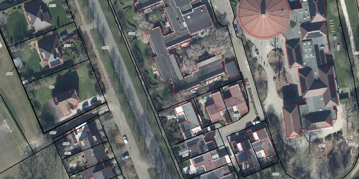 Het perceel waarop W.J. Bladergroenstraat 24 staat heeft een oppervlakte van 3880 m². Dit is een zeer groot perceel. De perceeloppervlakte wordt geregistreerd door het Kadaster. Gedetailleerde informatie over de maten van dit perceel kunt u vinden in het rapport Kadastrale kaart met maatvoering van W.J. Bladergroenstraat 24.