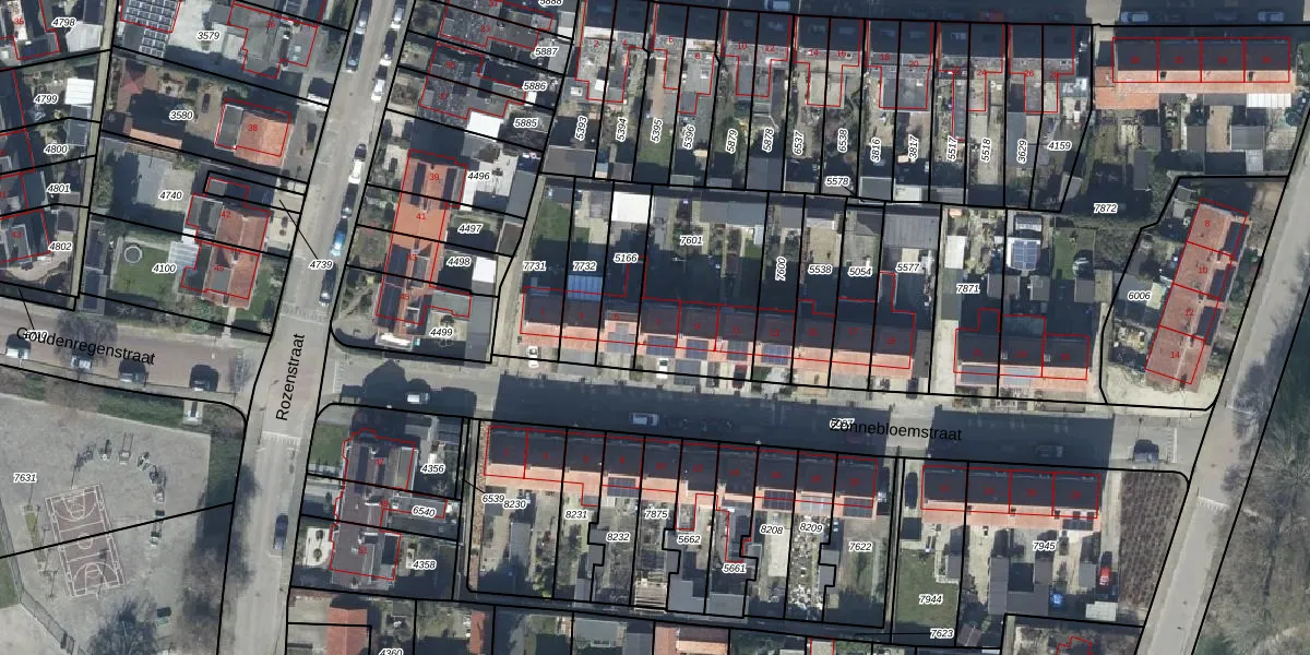 Het perceel waarop Zonnebloemstraat 7 staat heeft een oppervlakte van 511 m². Dit is een groot perceel. De perceeloppervlakte wordt geregistreerd door het Kadaster. Gedetailleerde informatie over de maten van dit perceel kunt u vinden in het rapport Kadastrale kaart met maatvoering van Zonnebloemstraat 7.