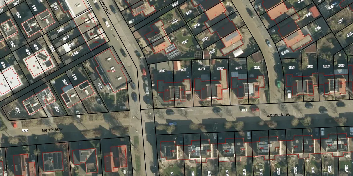 Zonnedauw 105 is gelegen op kadastraal perceel TIE00D6945. Deze kadastrale aanduiding is uniek en wordt gebruikt door het Kadaster om eigendomsrechten en andere zakelijke rechten vast te leggen. Het perceel maakt onderdeel uit van de kadastrale gemeente Tiel.