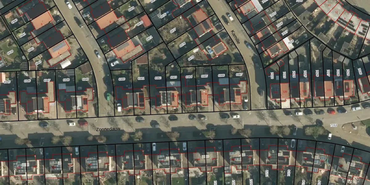 Zonnedauw 119 is gelegen op kadastraal perceel TIE00D6984. Deze kadastrale aanduiding is uniek en wordt gebruikt door het Kadaster om eigendomsrechten en andere zakelijke rechten vast te leggen. Het perceel maakt onderdeel uit van de kadastrale gemeente Tiel.