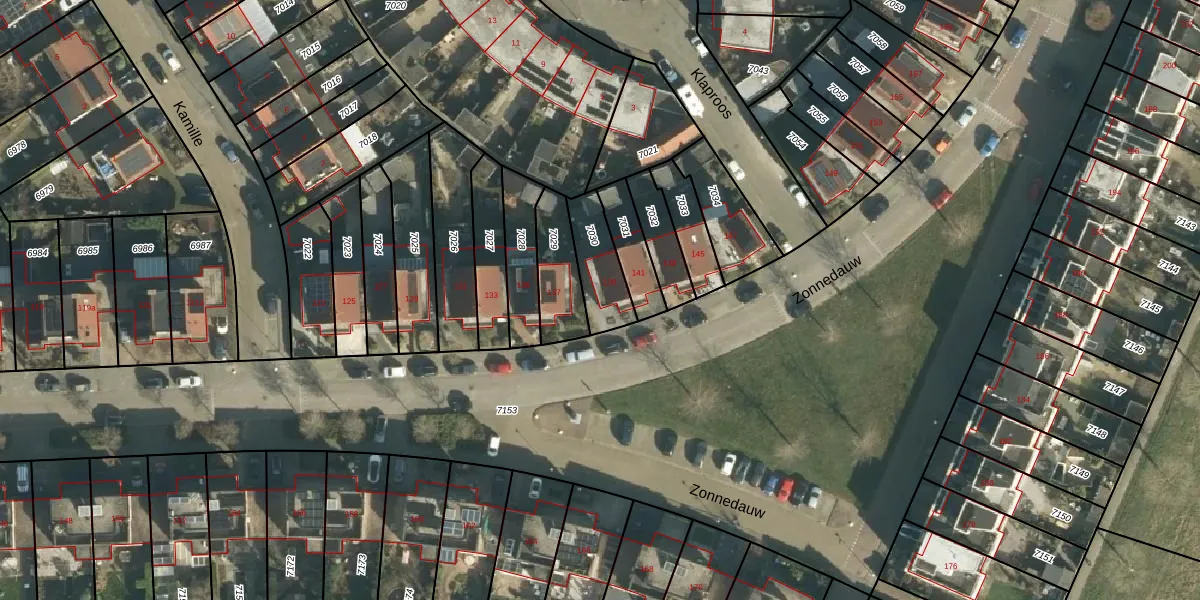 Het perceel waarop Zonnedauw 139 staat heeft een oppervlakte van 157 m². Dit is een middelgroot perceel. De perceeloppervlakte wordt geregistreerd door het Kadaster. Gedetailleerde informatie over de maten van dit perceel kunt u vinden in het rapport Kadastrale kaart met maatvoering van Zonnedauw 139.