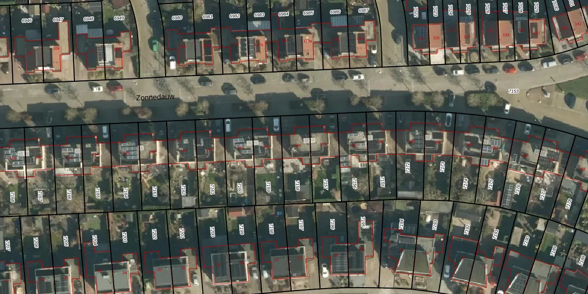 Het perceel waarop Zonnedauw 148 staat heeft een oppervlakte van 291 m². Dit is een middelgroot perceel. De perceeloppervlakte wordt geregistreerd door het Kadaster. Gedetailleerde informatie over de maten van dit perceel kunt u vinden in het rapport Kadastrale kaart met maatvoering van Zonnedauw 148.