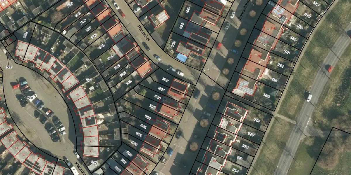 Zonnedauw 173 is gelegen op kadastraal perceel TIE00D7066. Deze kadastrale aanduiding is uniek en wordt gebruikt door het Kadaster om eigendomsrechten en andere zakelijke rechten vast te leggen. Het perceel maakt onderdeel uit van de kadastrale gemeente Tiel.