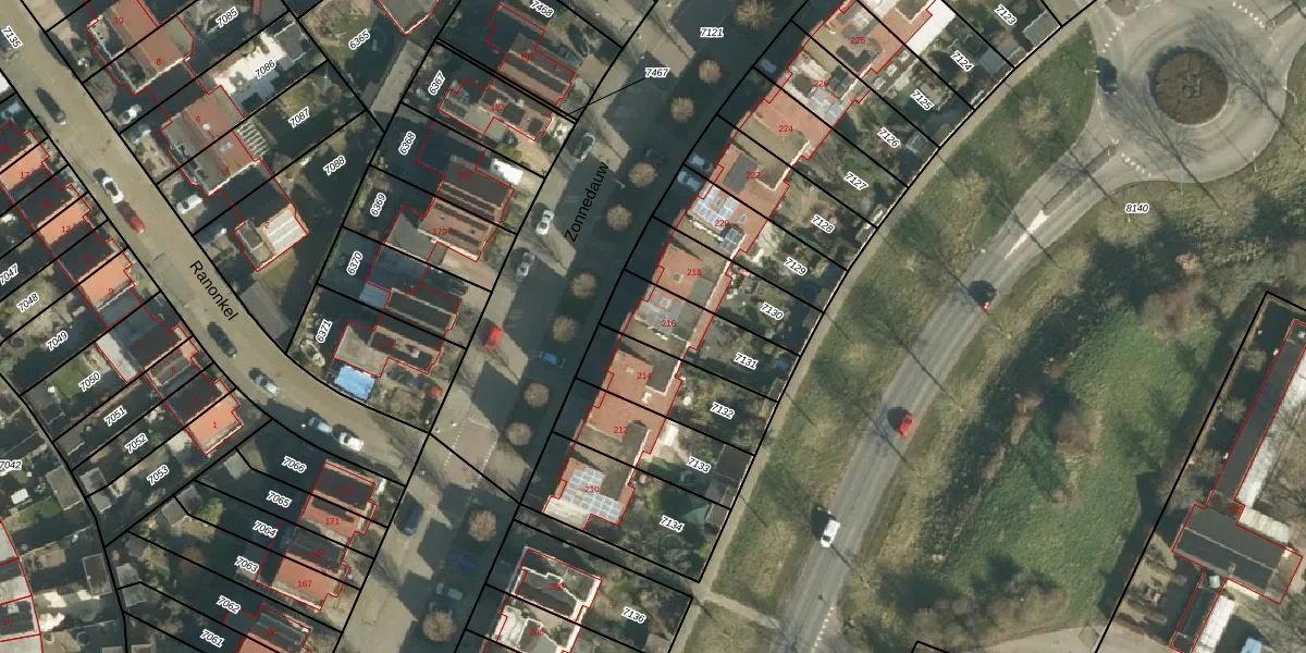 Zonnedauw 216 is gelegen op kadastraal perceel TIE00D7131. Deze kadastrale aanduiding is uniek en wordt gebruikt door het Kadaster om eigendomsrechten en andere zakelijke rechten vast te leggen. Het perceel maakt onderdeel uit van de kadastrale gemeente Tiel.