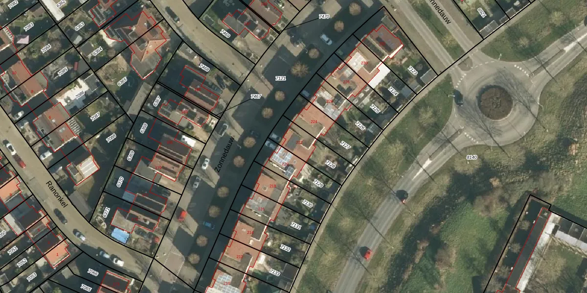 Zonnedauw 222 is gelegen op kadastraal perceel TIE00D7128. Deze kadastrale aanduiding is uniek en wordt gebruikt door het Kadaster om eigendomsrechten en andere zakelijke rechten vast te leggen. Het perceel maakt onderdeel uit van de kadastrale gemeente Tiel.